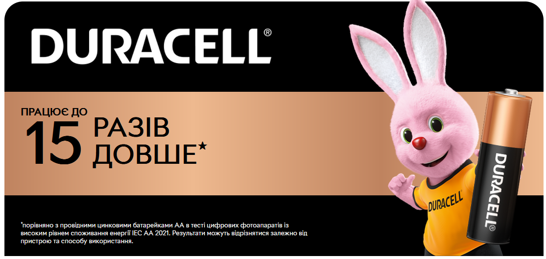 Довготривала робота: Завдяки великій ємності та високоякісній конструкції, батарейки Duracell AA забезпечують тривалу роботу вашого обладнання, рідко потребуючи заміни.